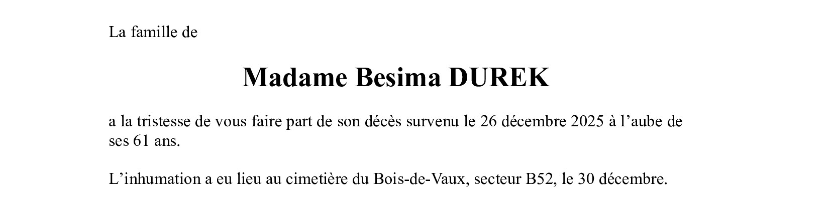 Madame Besima DUREK