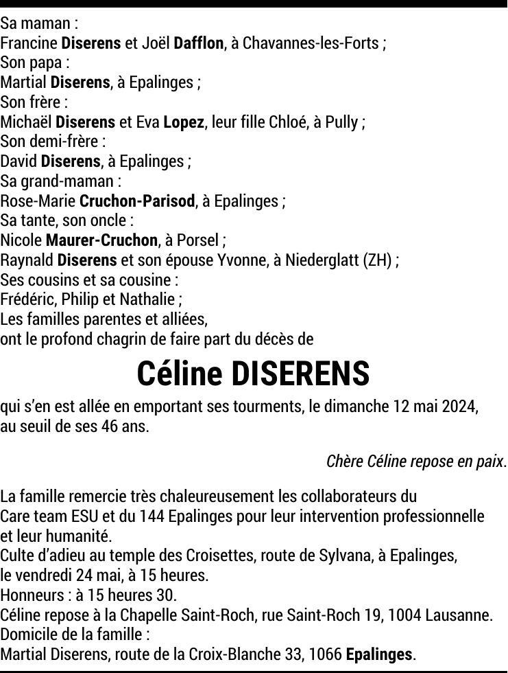 Madame Céline DISERENS 25 juil. 1978 - 12 mai. 2024 Avis mortuaire PFG Télecharger PDF Partager sur: Galerie PreviousNext PreviousNext