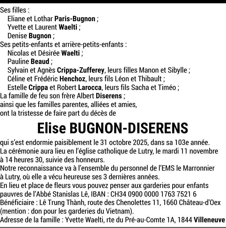 Madame Elise BUGNON-DISERENS
