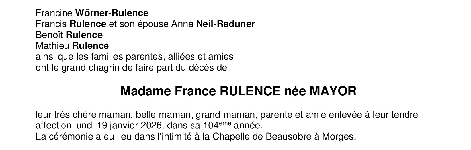 Madame France RULENCE