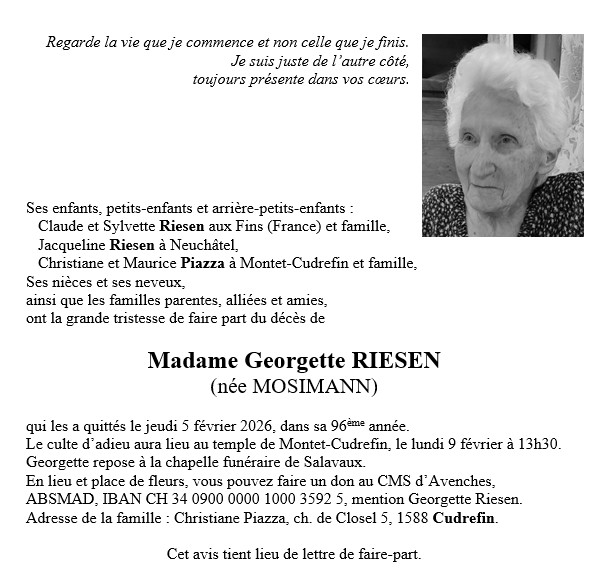 Madame Georgette RIESEN (née MOSIMANN)