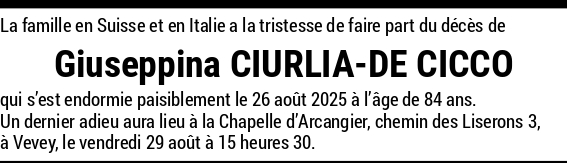 Madame Giuseppina CIURLIA-DE CICCO