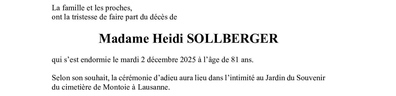 Madame Heidi SOLLBERGER