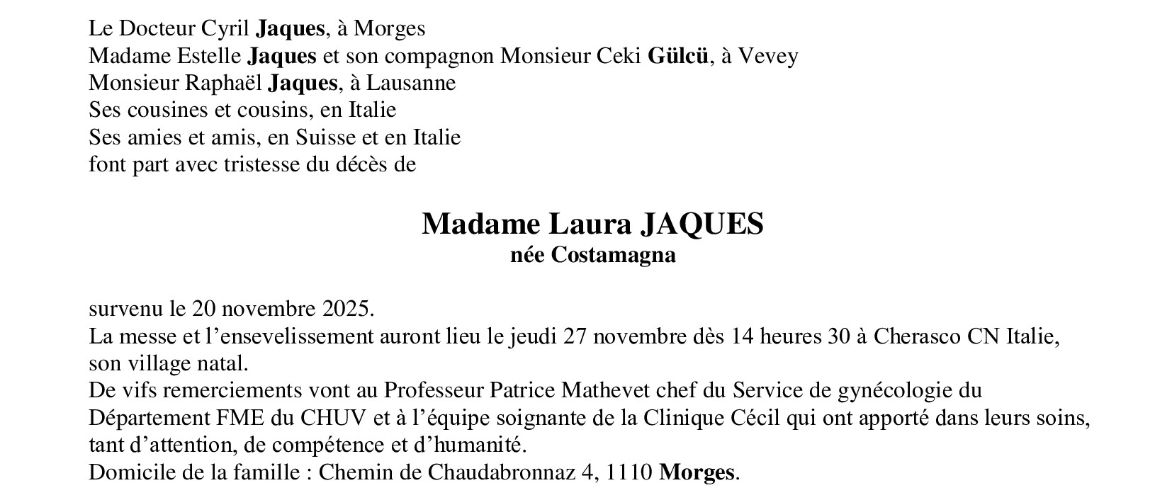 Madame Laura JAQUES