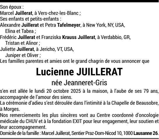 Madame Lucienne JUILLERAT