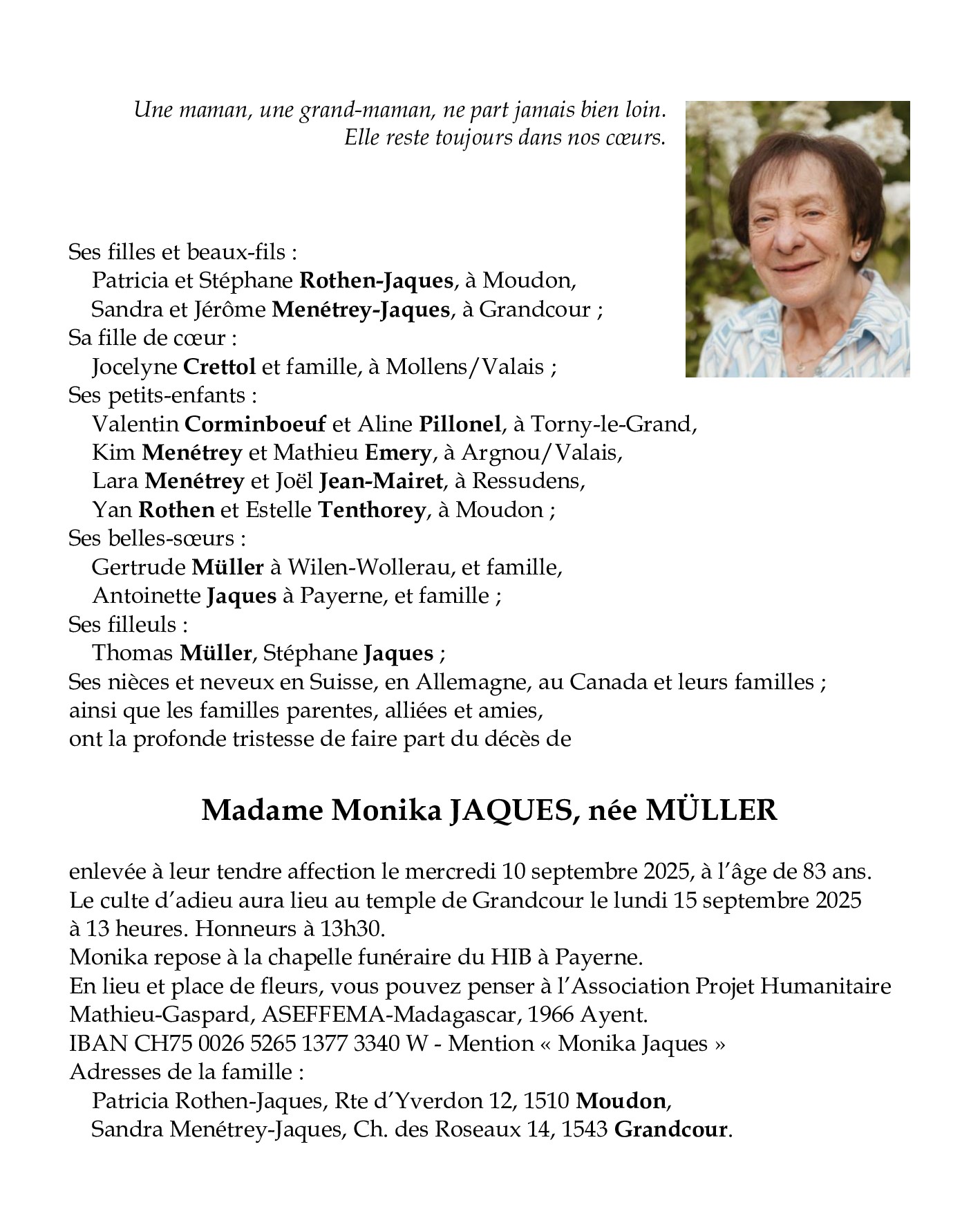 Avis mortuaires / Remerciements
