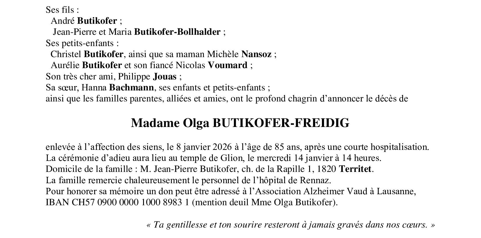 Madame Olga BUTIKOFER-FREIDIG