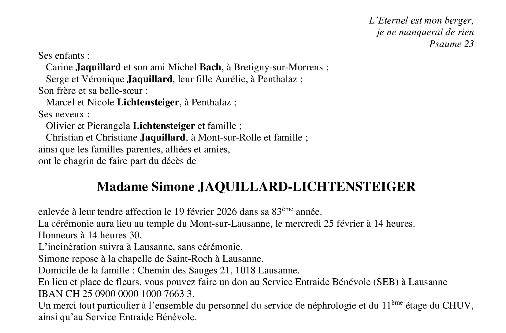 Madame Simone JAQUILLARD