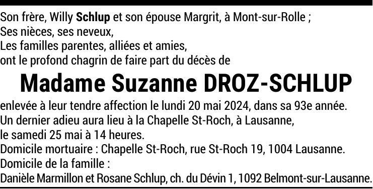 Madame Suzanne DROZ-SCHLUP 21 sep. 1931 - 20 mai. 2024 Avis mortuaire PFG Télecharger PDF Partager sur: Galerie PreviousNext PreviousNext