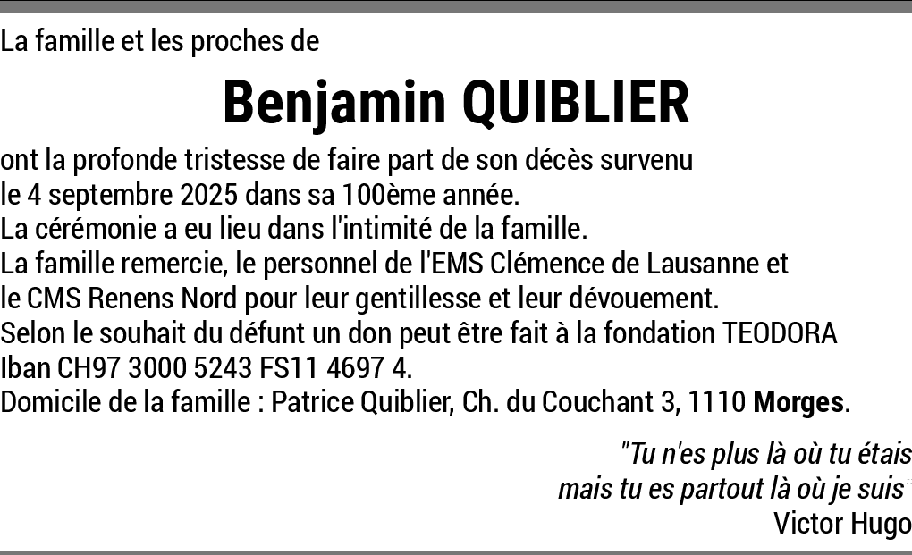 Monsieur Benjamin QUIBLIER