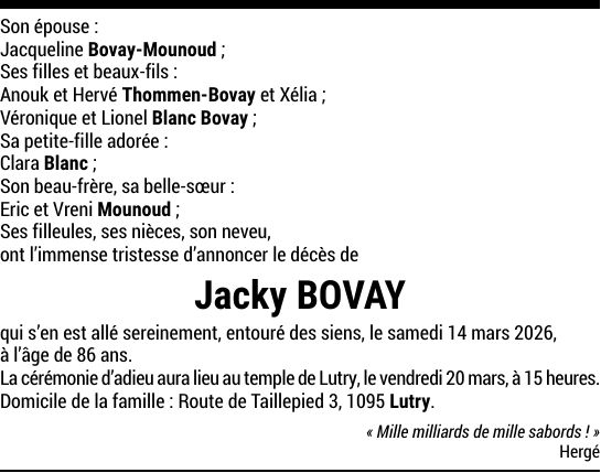 Monsieur Jacky BOVAY