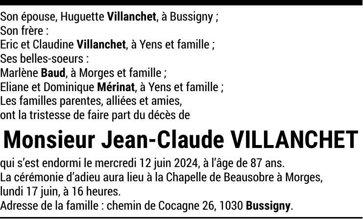 Monsieur Jean-Claude VILLANCHET 27 fév. 1937 - 12 juin. 2024 Avis mortuaire PFG Partager sur: Galerie PreviousNext PreviousNext